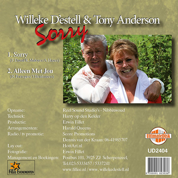 Het prachtige duet ‘Sorry’ laat zien dat deze twee artiesten, die elkaar al sinds de start van hun zangcarrières kennen en heel vaak hebben samen gewerkt, nog steeds op hun hoogtepunt staan. Willeke heeft al jaren een eigen seniorenprogramma waarmee ze heel Nederland door toert, maar ook een geweldig 70 en 80er jaren repertoire voor feesten en bruiloften!